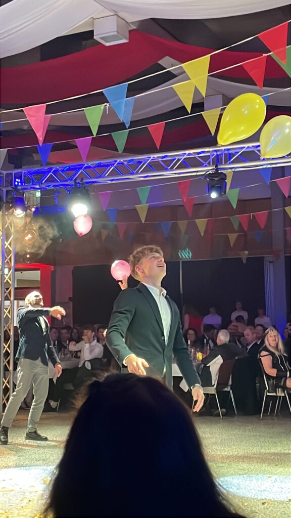 Am Samstag, den 8. November 2025, fand an unserer Schule der traditionelle Schulball, organisiert vom Förderverein statt – in diesem Jahr unter dem glanzvollen Motto „Die Golden Twenties“. Zahlreiche Schülerinnen und Schüler, Eltern, Lehrkräfte sowie Ehemalige feierten gemeinsam einen stimmungsvollen Abend, der ganz im Stil der 1920er Jahre stand. Das abwechslungsreiche Programm sorgte für beste Unterhaltung: Die Tanzgruppen der 5. Klassen begeisterten mit schwungvollen Darbietungen, während die Q1 mit einer eindrucksvollen Choreografie das Publikum in die Atmosphäre der Golden Twenties entführte. Ein weiteres Highlight war die Tombola, bei der viele attraktive Preise gewonnen werden konnten. Große Spannung herrschte auch bei der Wahl des „Ehemaligen des Jahres 2025“, mit der dieses Jahr eine ehemalige Schülerin für ihre besondere Darbietung und den Mut dazu ausgezeichnet wurde. Zwischen den Programmpunkten sorgten lustige Spiele und Mitmachaktionen für Abwechslung und ausgelassene Stimmung. Für das leibliche Wohl war selbstverständlich ebenfalls bestens gesorgt – von kleinen Snacks bis hin zu süßen Leckereien. Der Schulball 2025 bot somit nicht nur ein buntes Unterhaltungsprogramm, sondern auch viele Gelegenheiten zum Austausch, Lachen und gemeinsamen Feiern. Ganz im Sinne der „Golden Twenties“ wurde getanzt, gelacht und der Schulgemeinschaft ein unvergesslicher Abend beschert.